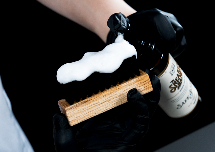 スニーカーを洗うことって結構面倒ですよね。洗って、すすいで、乾かすところまでがワンセット。洗浄力が強い洗剤では”黄ばみ”や”色移り”など、すすぎをしっかりしても洗剤残りがあって後々面倒な事故が起こってしまいがちです。効果が目で確認しやすいからこそ洗浄力の高い洗剤の罠はこんなところにあります。でも、シュプリームフォームワンは安全性が高いから、『泡を出して、洗って、拭き取るだけ』で終わり。少し洗剤が残ってしまったり、雑にパパッと洗ったりしても大丈夫。余計な心配せず”気楽”に洗うことができます。洗剤の安全性を高め、事故リスクを最小限に抑えられたからこそ、最も手軽に洗えるスニーカーシャンプーに仕上がりました。