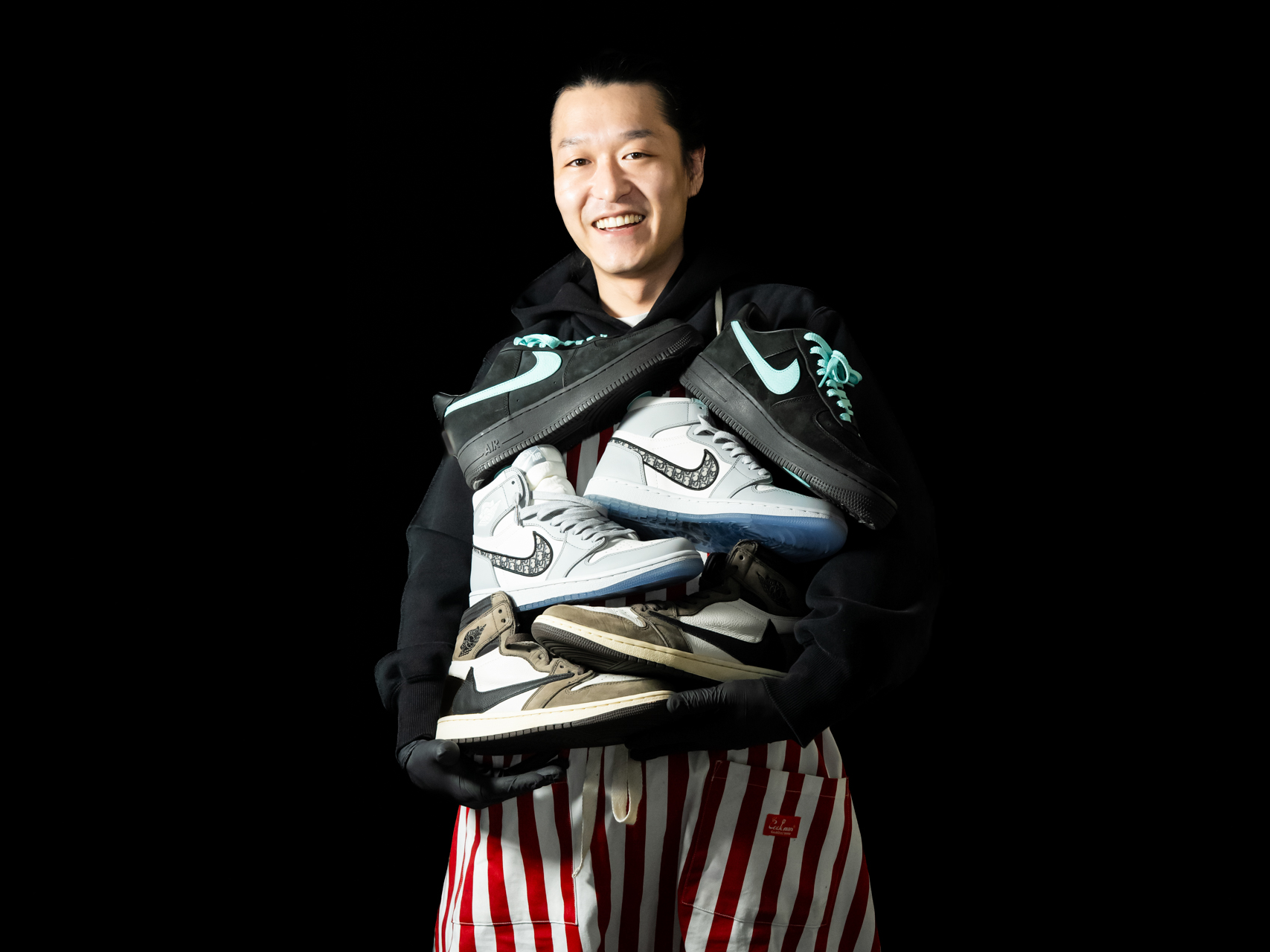 プロのクリーニング師<オカポン"お洗濯ニキ">。独学でスニーカーケアを研究しSNSで発信する彼のもとには、フォロワーから「キレイにしたいけど失敗が怖い」という切実な声が多数寄せられました。その声に応え、まずオンラインクリーニングを開始。これがSNEAKER BARBERの原点です。