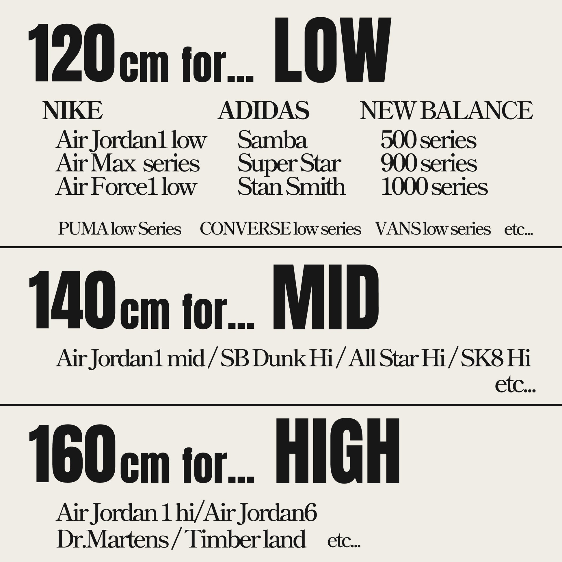 スニーカーの質感を損なわず、ヴィンテージモデルにも自然に馴染むプレミアムシューレースです。